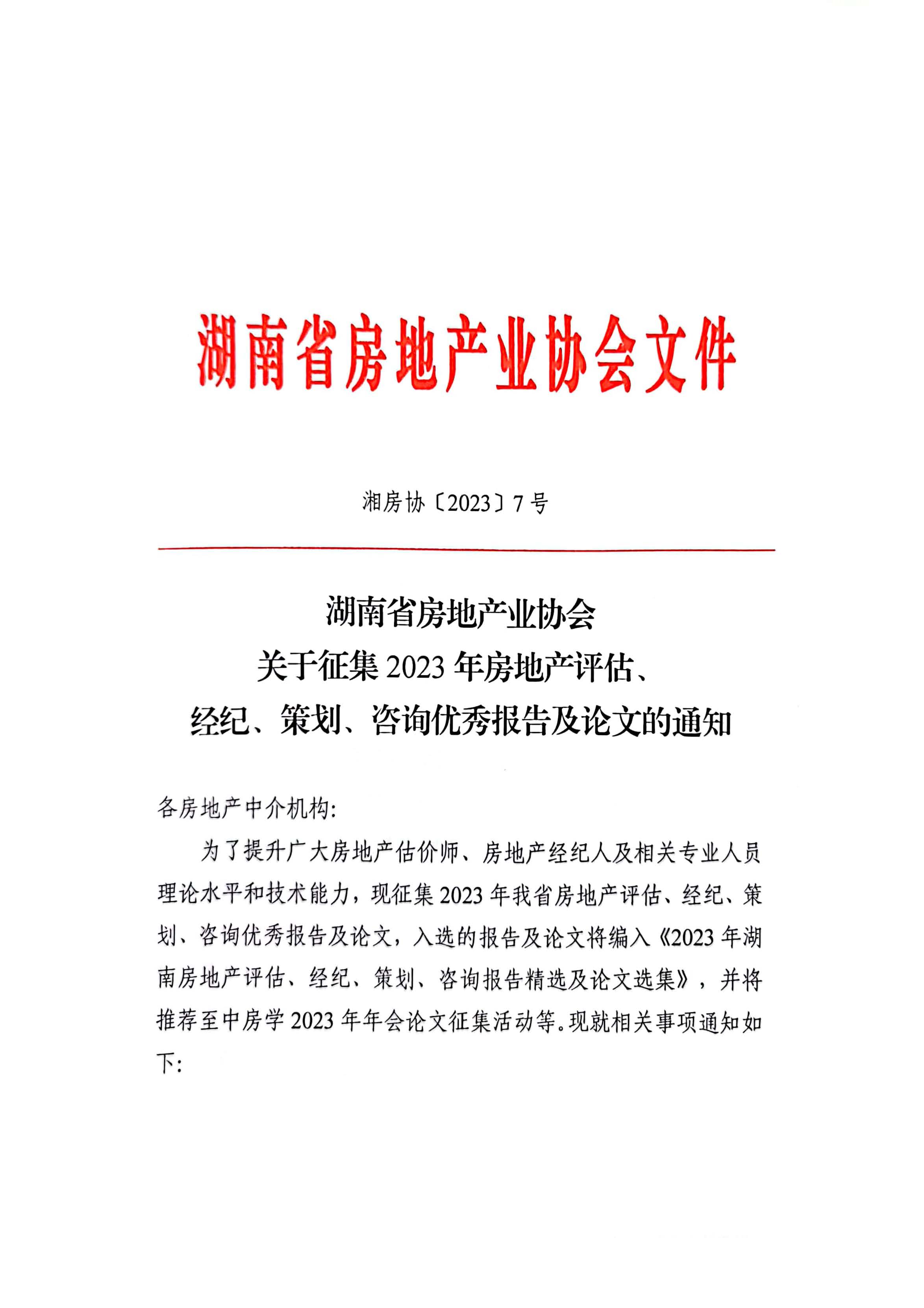 關于征集2023年房地產評估、經紀、策劃、咨詢優秀報告及論文的通知