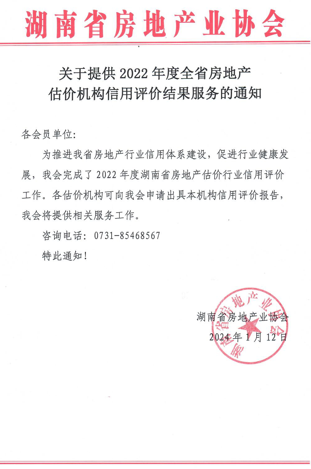 關于提供2022年度全省房地產估價機構信用評價結果服務的通知