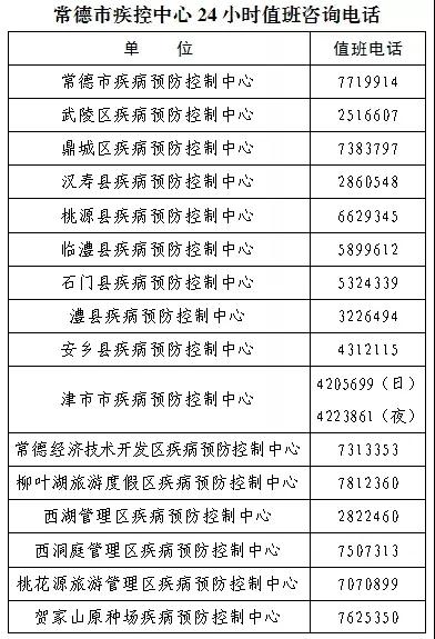 長沙市縣兩級疾控中心24小時咨詢電話一覽表