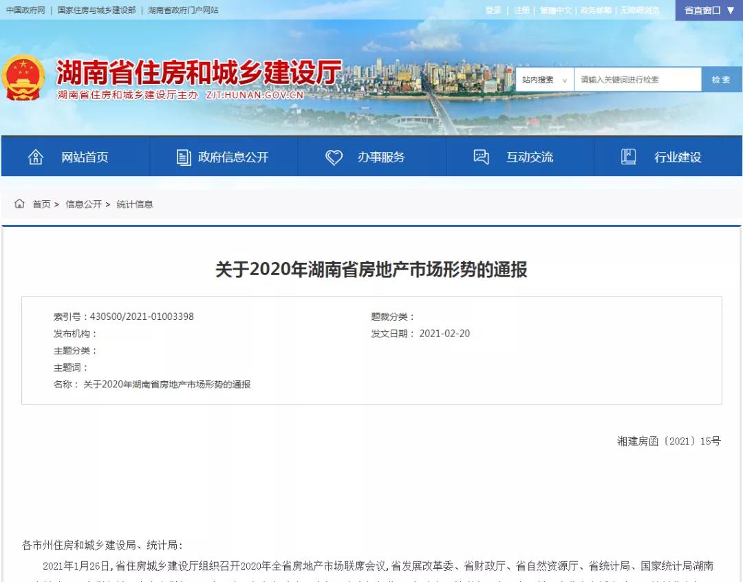 近日,湖南省住建廳發布《關于2020年湖南省房地產市場形勢的通報》,總體表現為投資穩步回升。