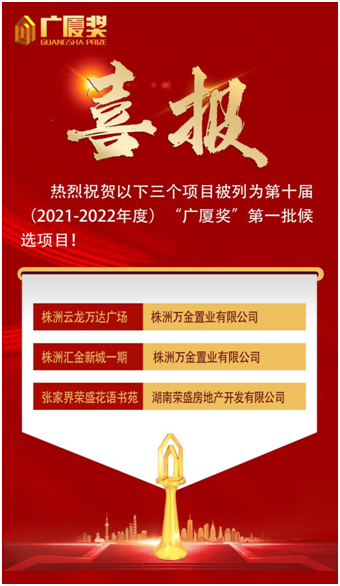 3月31日,由中國房地產(chǎn)業(yè)協(xié)會(huì)、住房和城鄉(xiāng)建設(shè)部住宅產(chǎn)業(yè)化促進(jìn)中心共同組織的第十屆(2021-2022年度) “廣廈獎(jiǎng)”第一批候選項(xiàng)目名單重磅出爐!經(jīng)湖南省房地產(chǎn)業(yè)協(xié)會(huì)推薦的三個(gè)項(xiàng)目榮獲殊榮!