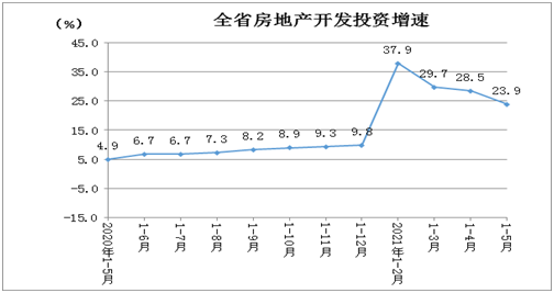1-5月,全省房地產開發企業房屋施工面積34779.10萬平方米,增長4.5%。其中,住宅施工面積25574.74萬平方米,增長5.4%。房屋新開工面積3376.97萬平方米,下降5.2%。其中,住宅新開工面積2677.66萬平方米,增長0.4%。房屋竣工面積1654.46萬平方米,增長13.8%。其中,住宅竣工面積1263.69萬平方米,增長13.8%。