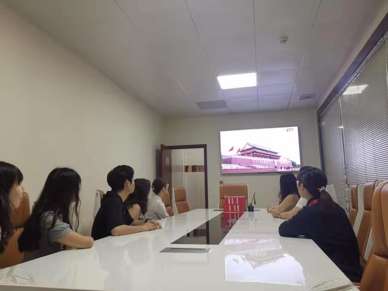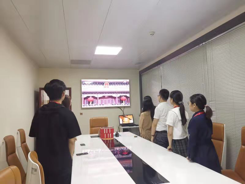 中原集團(tuán):中共中原(湖南)房地產(chǎn)代理有限公司黨支部組織全體黨員及員工認(rèn)真觀看慶祝建黨100周年大會(huì)直播,當(dāng)國(guó)歌響起全體黨員自覺(jué)起立唱起國(guó)歌。