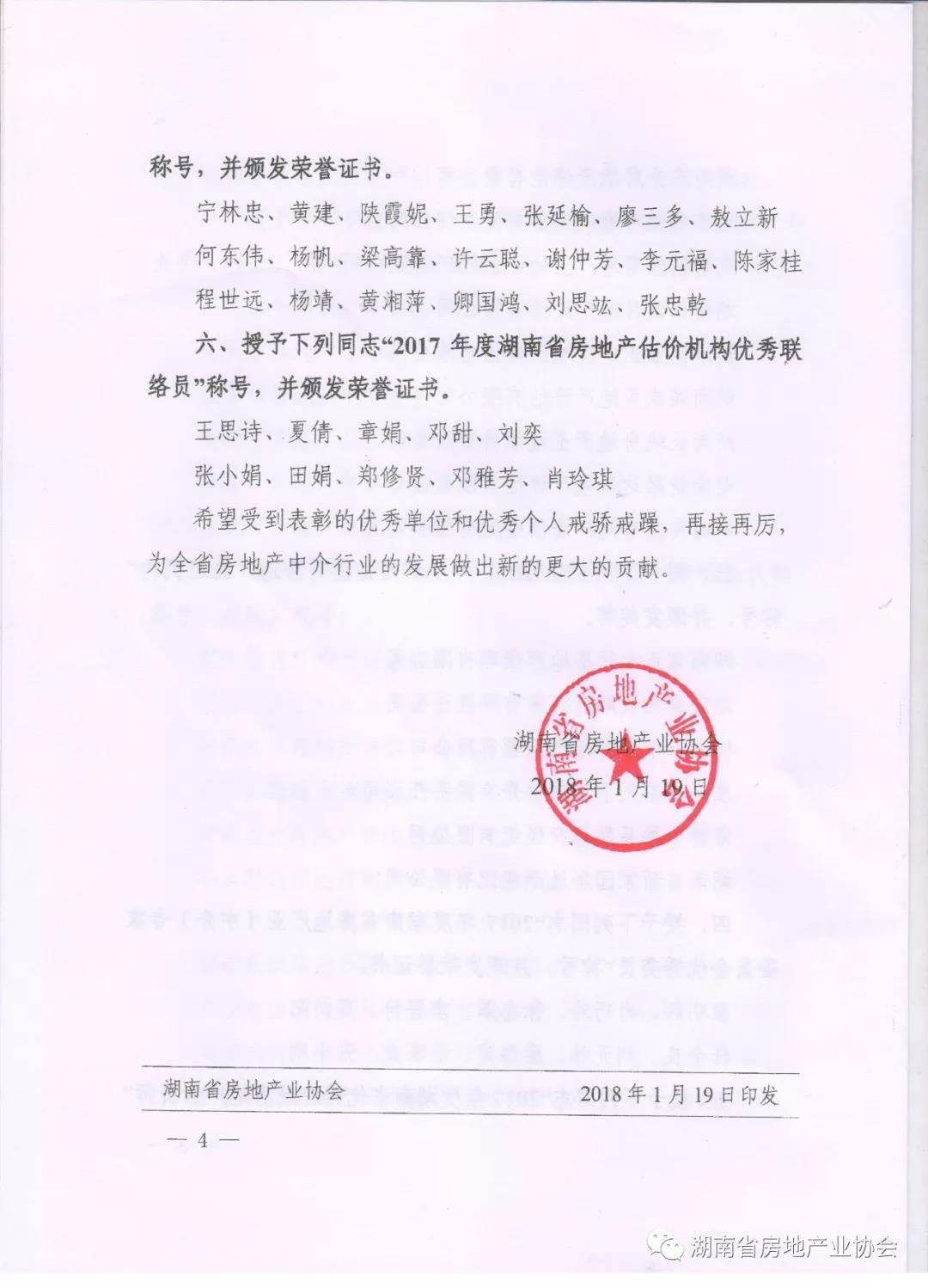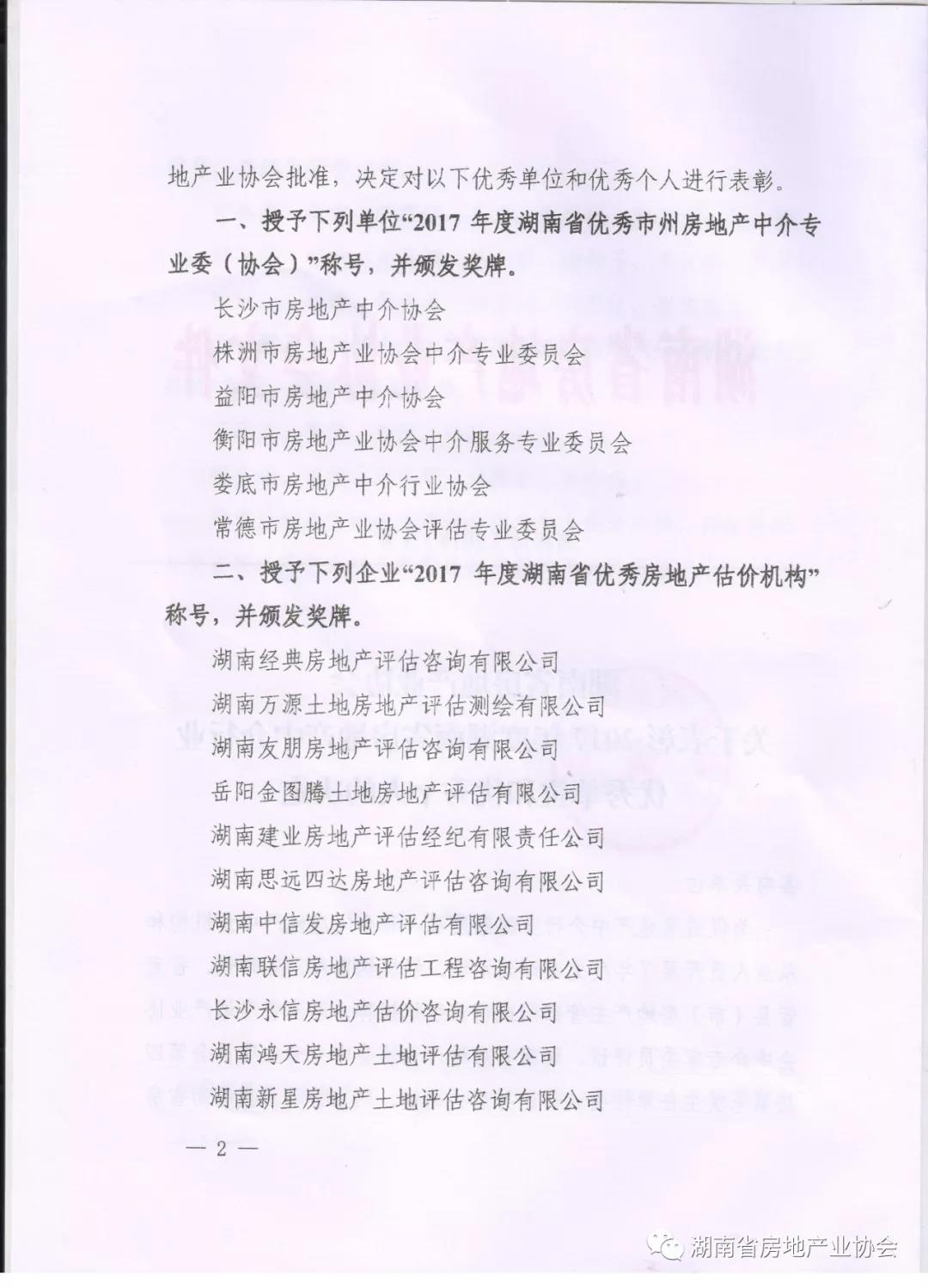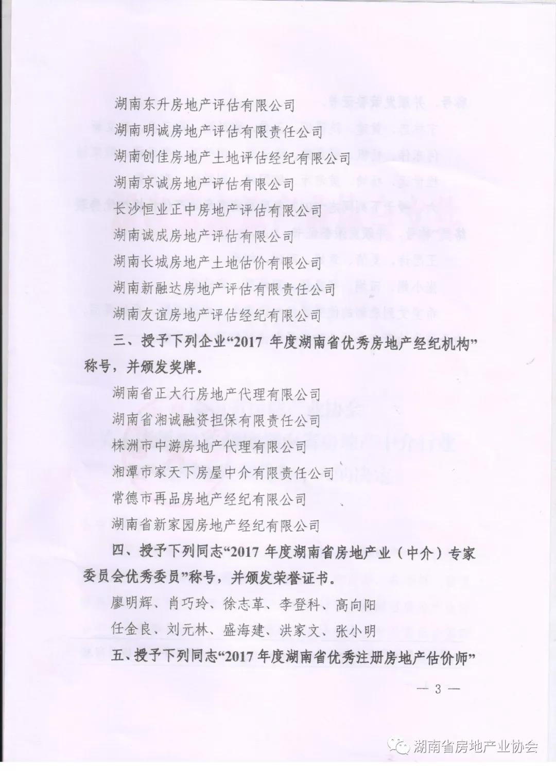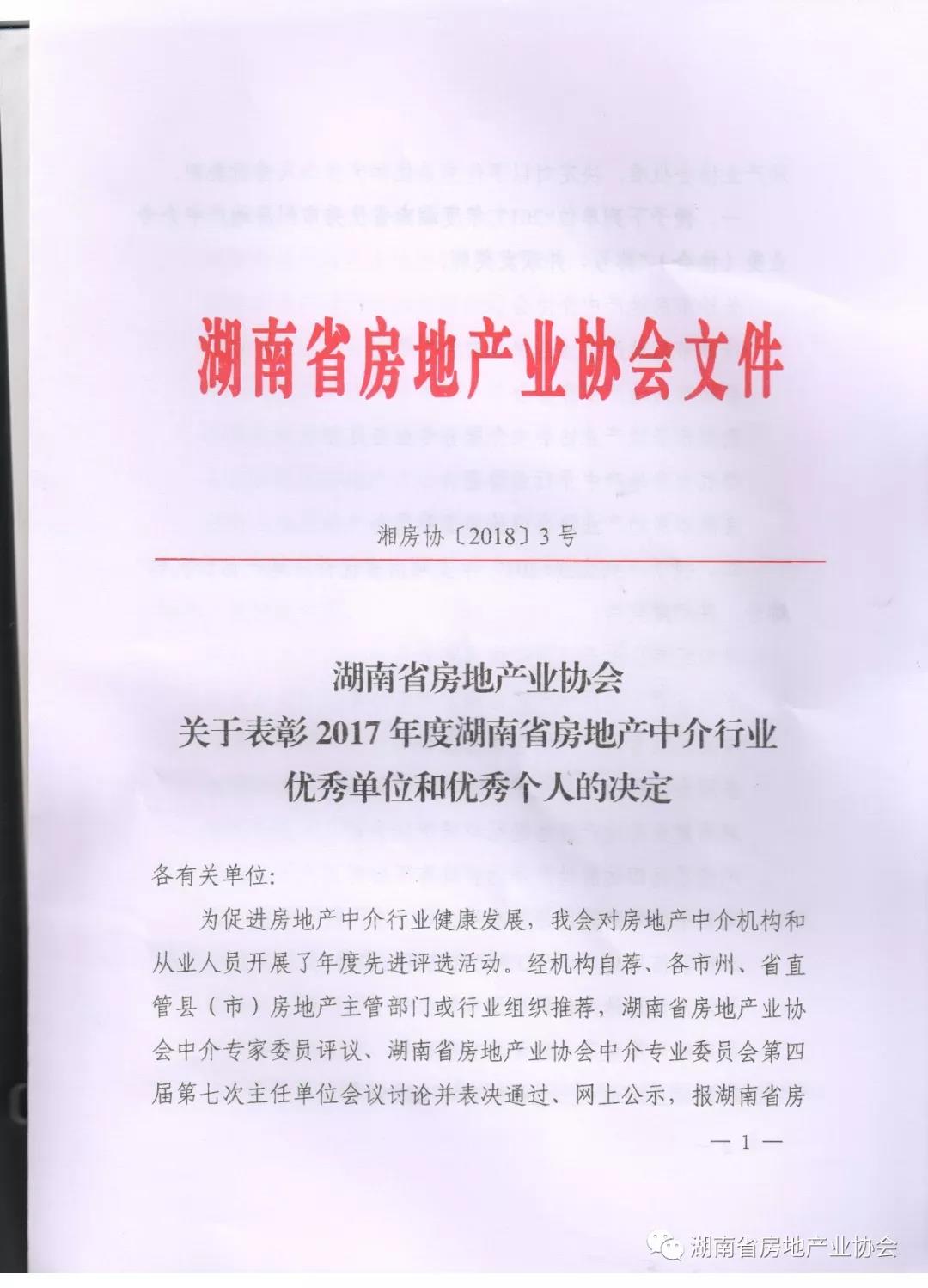 表彰2017年度湖南省房地產中介行業優秀單位和優秀個人