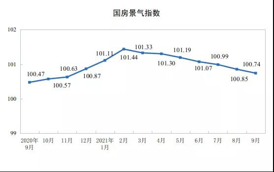 9月份,房地產(chǎn)開發(fā)景氣指數(shù)(簡(jiǎn)稱“國(guó)房景氣指數(shù)”)為100.74。