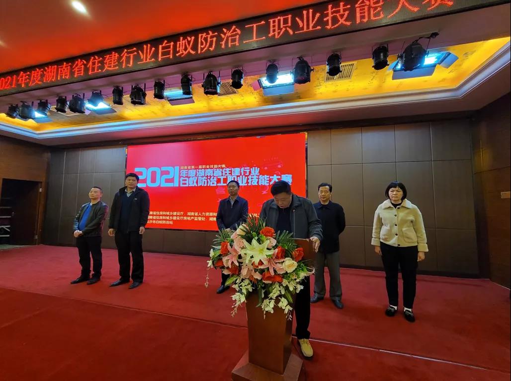 本次大賽由省住房和城鄉建設廳、省人力資源和社會保障廳、省總工會聯合舉辦,由廳房地產監管處、省房地產業協會承辦,長沙市白蟻防治站協辦。省住建廳二級巡視員姚志宏出席開幕式并宣布開幕,長沙市住建局黨組成員馮先強致歡迎辭。
