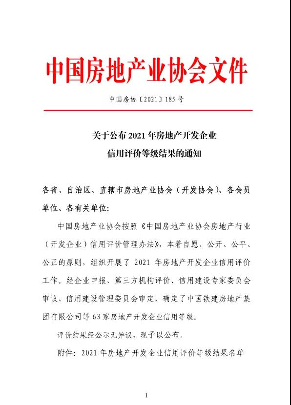 中房協(xié)發(fā)布信用等級(jí)榜 我會(huì)三家會(huì)員單位獲AAA評(píng)定!