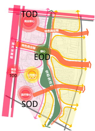 湖橡片區項目定位為產城融合新實施、未來社區新載體,擬按照“產業導入、醫城融合”的理念規劃,采用SOD+EOD+TOD的發展模式實施。