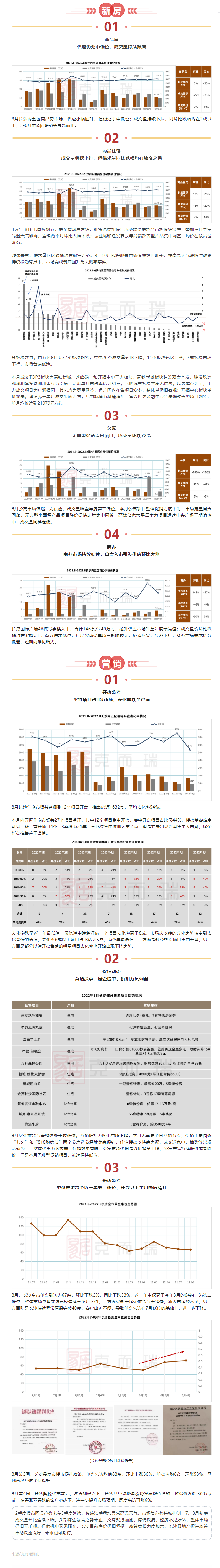 但市場危機中又見曙光。8月商品房成交量同環比跌幅較7月有收窄之勢;綠城鳳起麓鳴入市,長沙普宅天花板升至35000元/平,高端豪宅項目帶動房價走高預期,對市場有一定強心劑作用;長沙縣政策力度較大,快速刺激需求進場,案場來訪認購普漲,帶動市場信心。