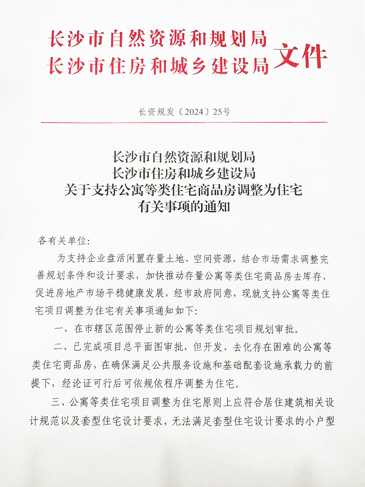 去庫存!長沙發(fā)文支持公寓等類住宅商品房調(diào)整為住宅