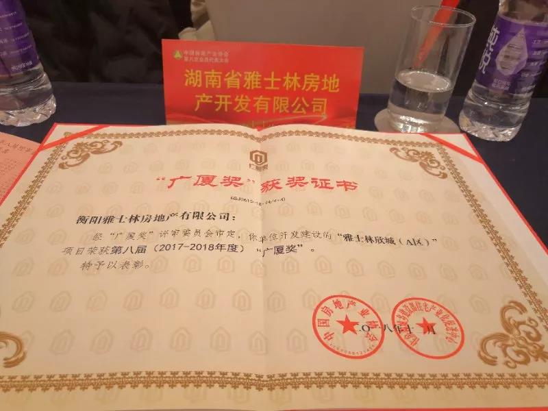 雅士林欣城作為衡陽市唯一獲“廣廈獎”的項目,不僅為衡陽地產增了光添了彩,同時也說明了雅士林房地產開發項目的水平達到了國家級要求。