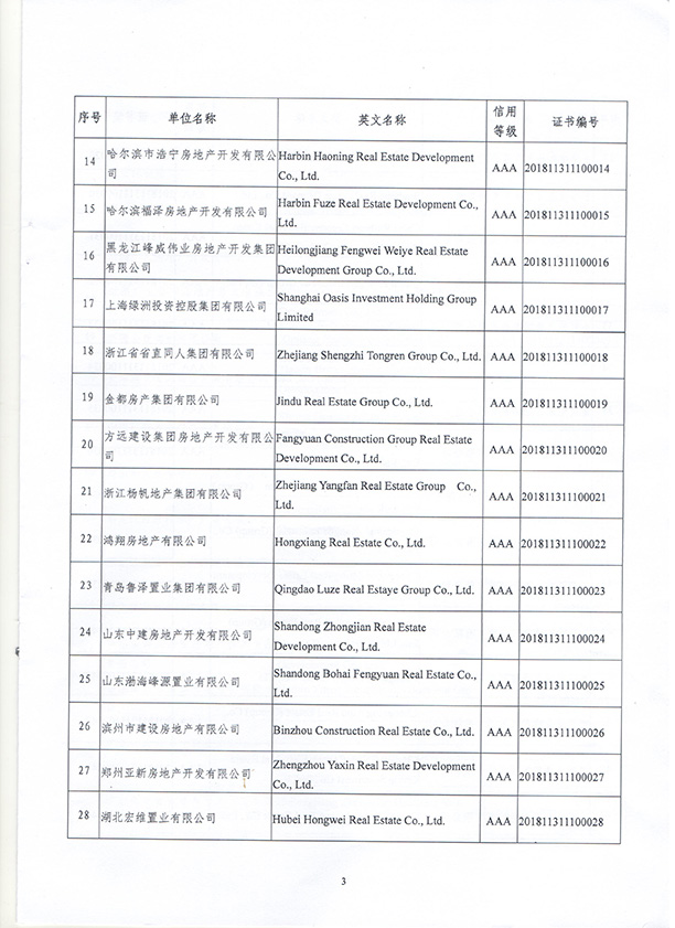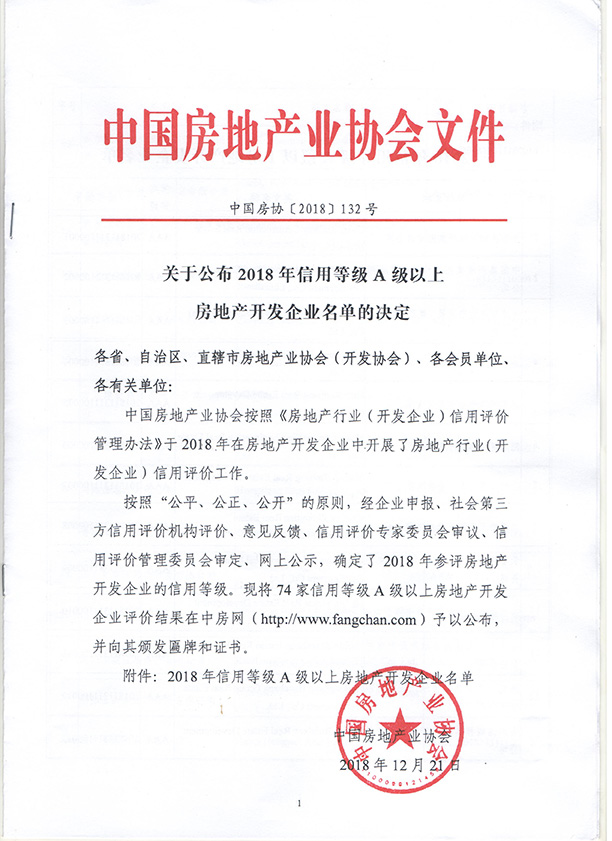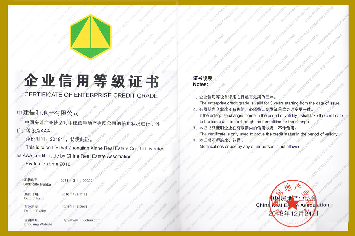 熱烈祝賀湖南中建信和地產有限公司和晉合置業(湖南)有限公司榮獲中國房地產業協會頒發“信用等級AAA”企業
