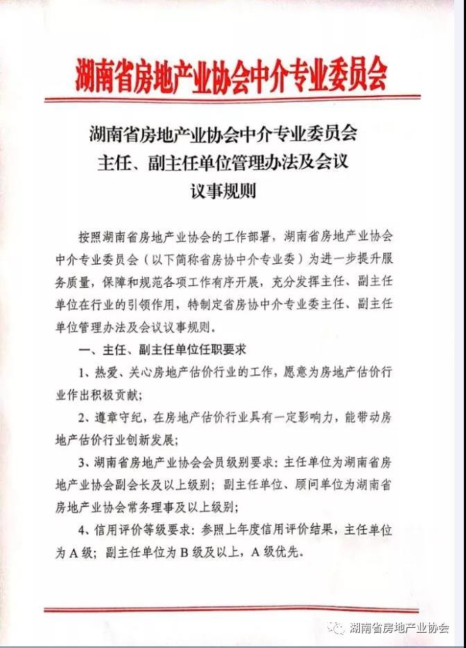 湖南省房地產業協會中介專業委員會主任、副主任單位管理辦法及會議議事規則