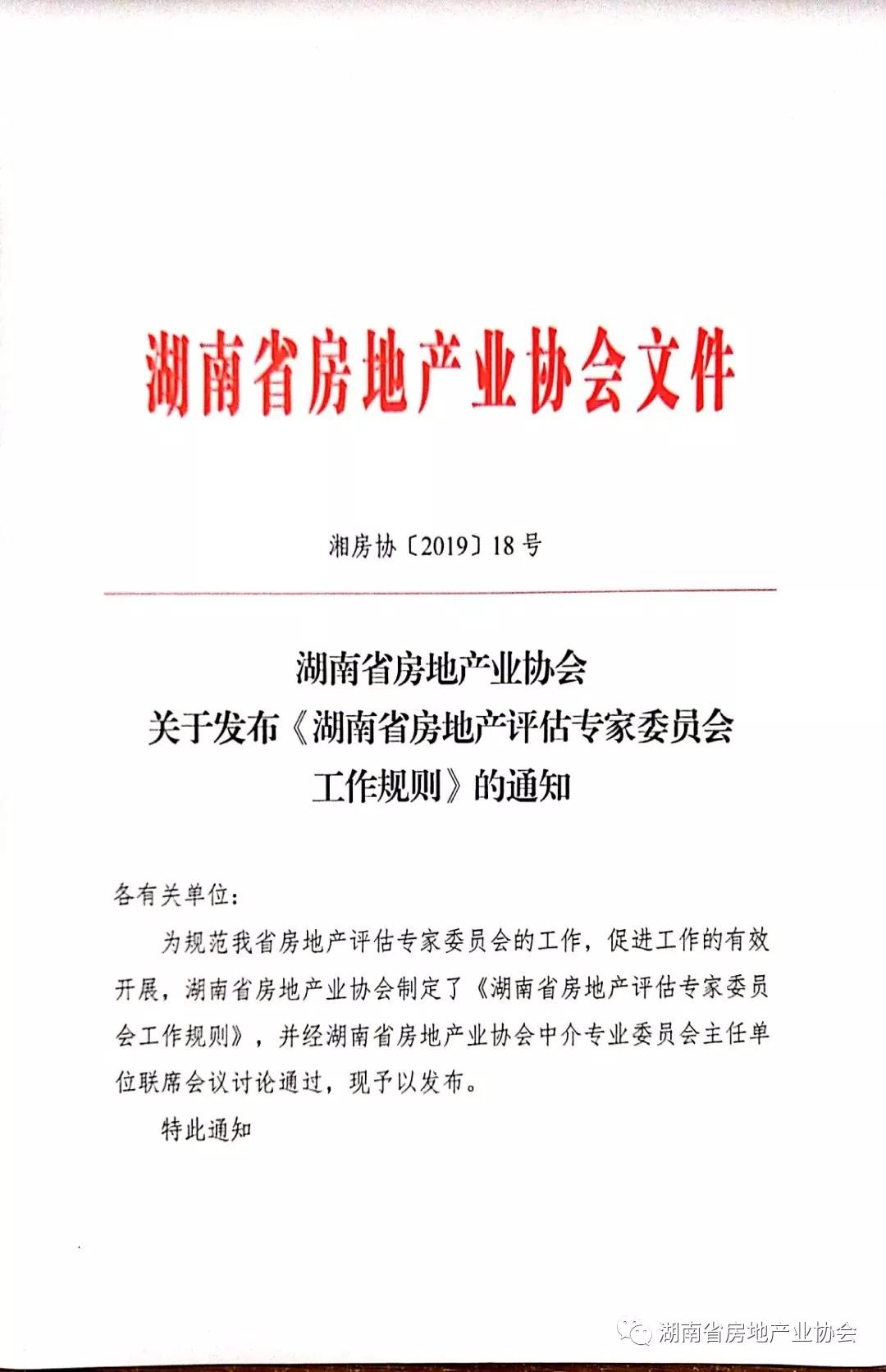 關于發布《湖南省房地產評估專家委員會工作規則》的通知