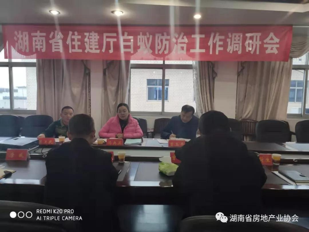 2019年12月31日與2020年1月7日,省住建廳房產處副處長馮典英、調研員曾玉平、省房協白蟻專業委秘書長陳衛民一行來到衡陽、湘潭、長沙三地調研白蟻防治工作。三地白蟻防治分管領導與白蟻防治站主要負責人參與調研。