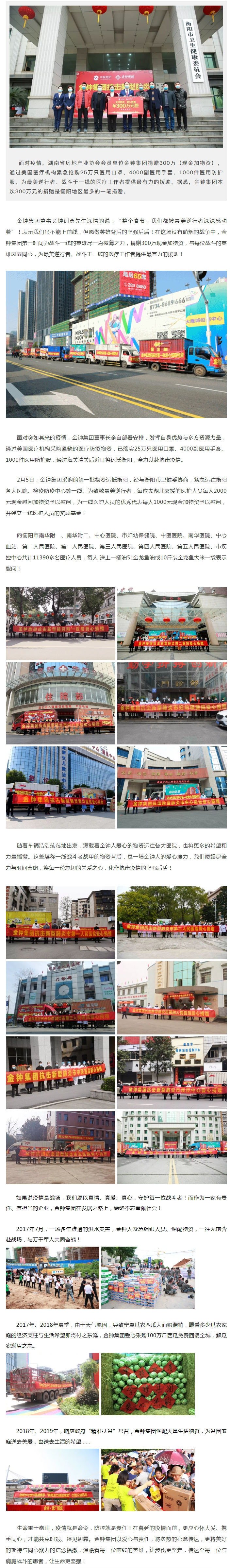 湖南省房地產業協會會員單位金鐘集團捐贈300萬元,致敬“最美逆行者”!