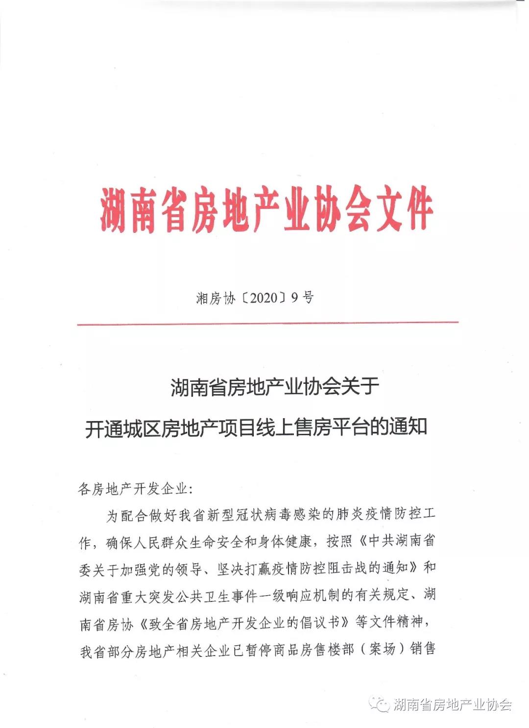 湖南省房地產業協會關于開通城區房地產項目線上售房平臺的通知