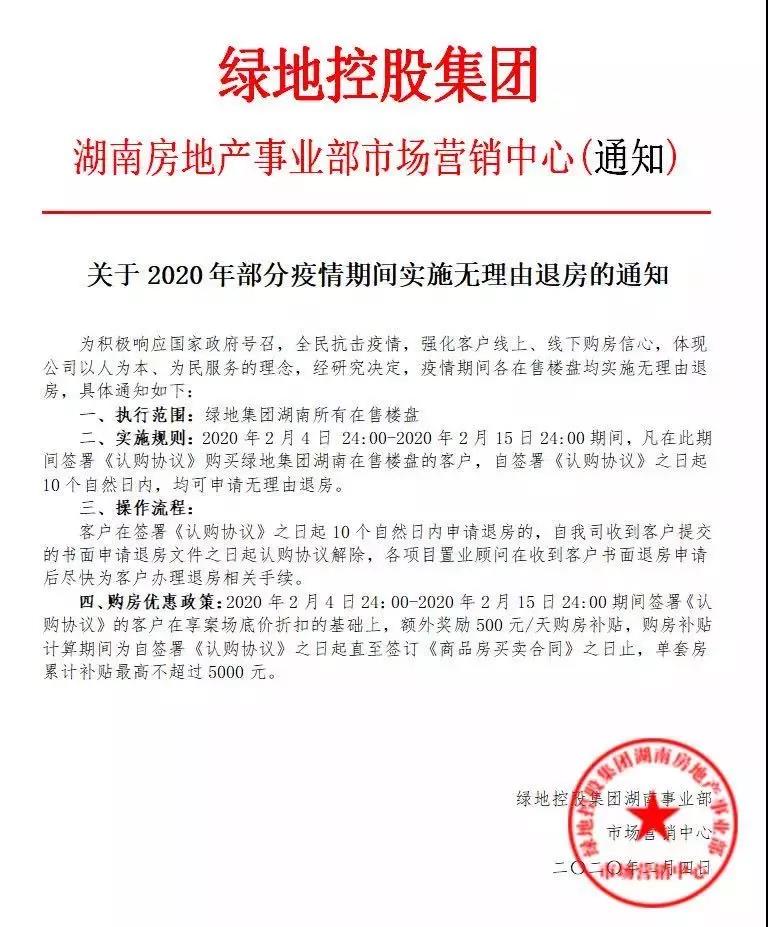 綠地集團(tuán)在第一時間,向武漢支援50萬件防疫口罩、2萬件隔離服;向上海捐贈價值2000萬元緊急醫(yī)用防疫物資及向相關(guān)省市捐贈當(dāng)?shù)鼐o缺防疫物資。截至目前,完成海外集貨總量防護(hù)口罩300萬只、醫(yī)用隔離和防護(hù)服70萬件、醫(yī)用手套50萬雙,還有大量物資已運抵國內(nèi)或正在途中。與此同時,湖南綠地旗下各大樓盤已開啟線上購房,且增加了“無理由退房”與“每日500元購房補貼”兩大優(yōu)惠政策,全方位保障疫情期間購房者權(quán)益。