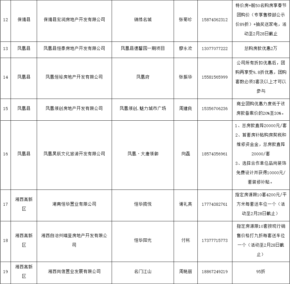 湘西州新春置業(yè)優(yōu)惠活動(dòng)項(xiàng)目清單表