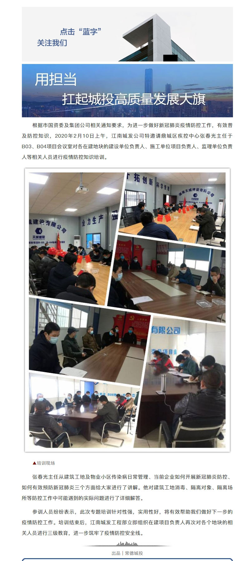 【用擔當 扛起城投高質量發展大旗】江南城發開展關于節后復工疫情防控知識培訓