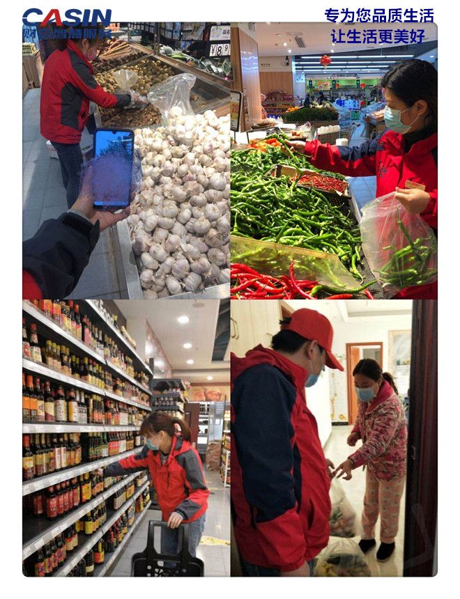 5、項目經理趙鋒帶著客服小姐姐們一起到超市為業主代購副食品以及新鮮蔬菜,讓業主感受到溫暖。