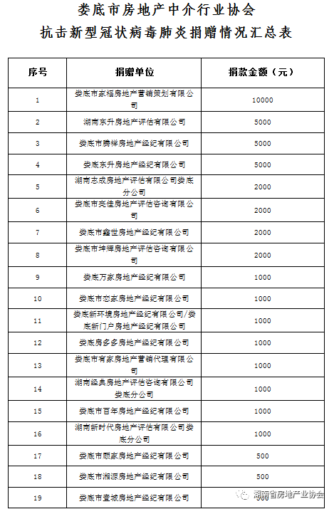 守望相助!婁底市房地產中介行業踴躍捐款抗擊疫情