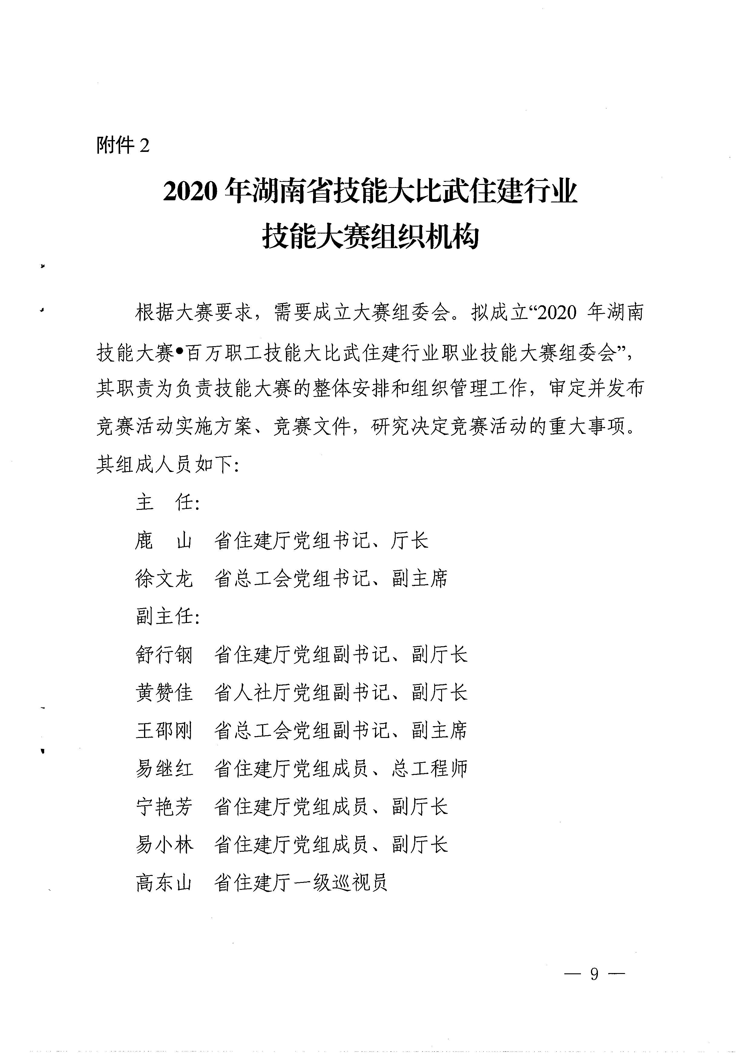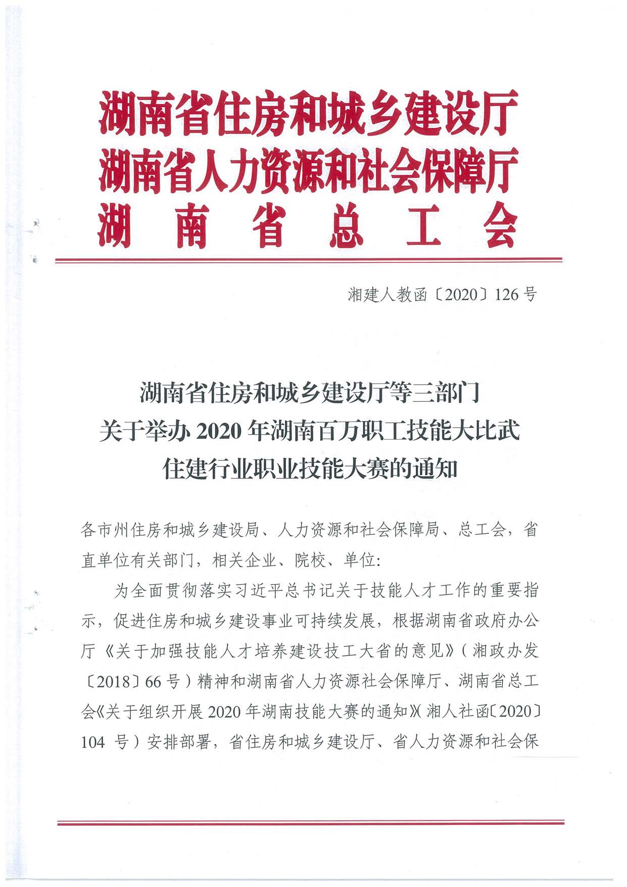 湖南省住建廳等三部門關于舉辦2020年湖南百萬職工技能大比武住建行業(yè)職業(yè)技能大賽的通知
