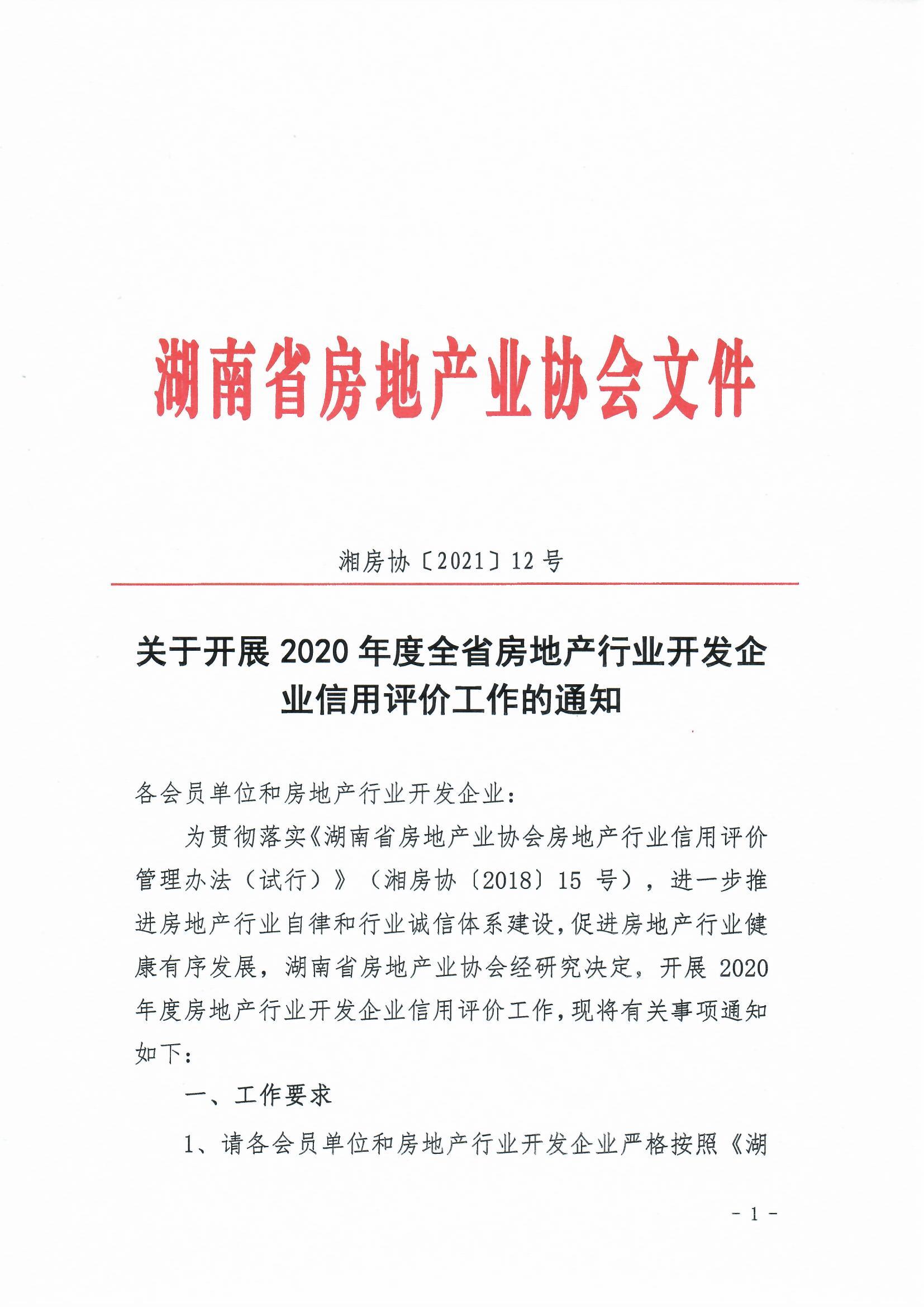 關于開展2020年度全省房地產行業開發企業信用評價工作的通知