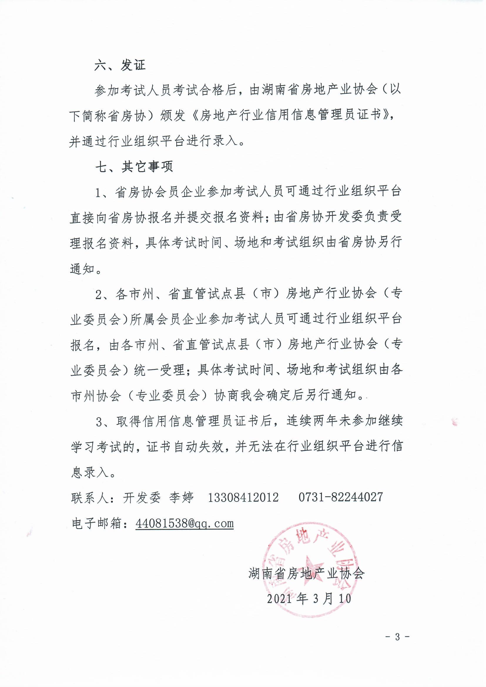 關于開展2021年湖南省房地產行業信用信息管理員考試報名工作的通知