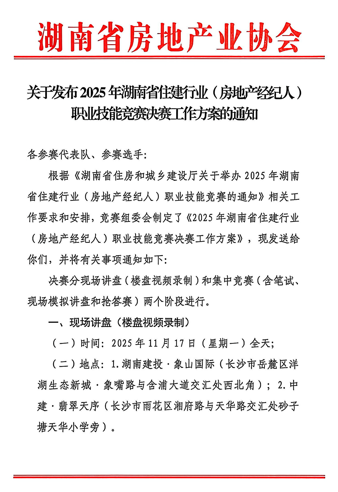 關(guān)于發(fā)布 2025 年湖南省住建行業(yè)(房地產(chǎn)經(jīng)紀(jì)人)職業(yè)技能競賽決賽工作方案的通知