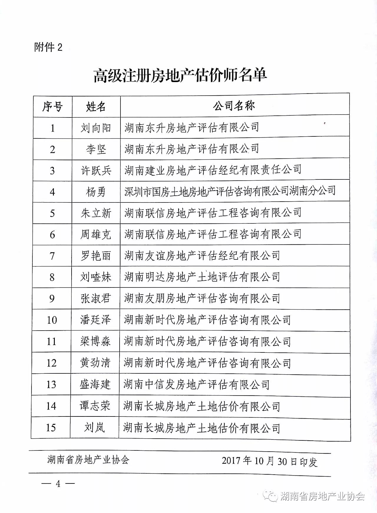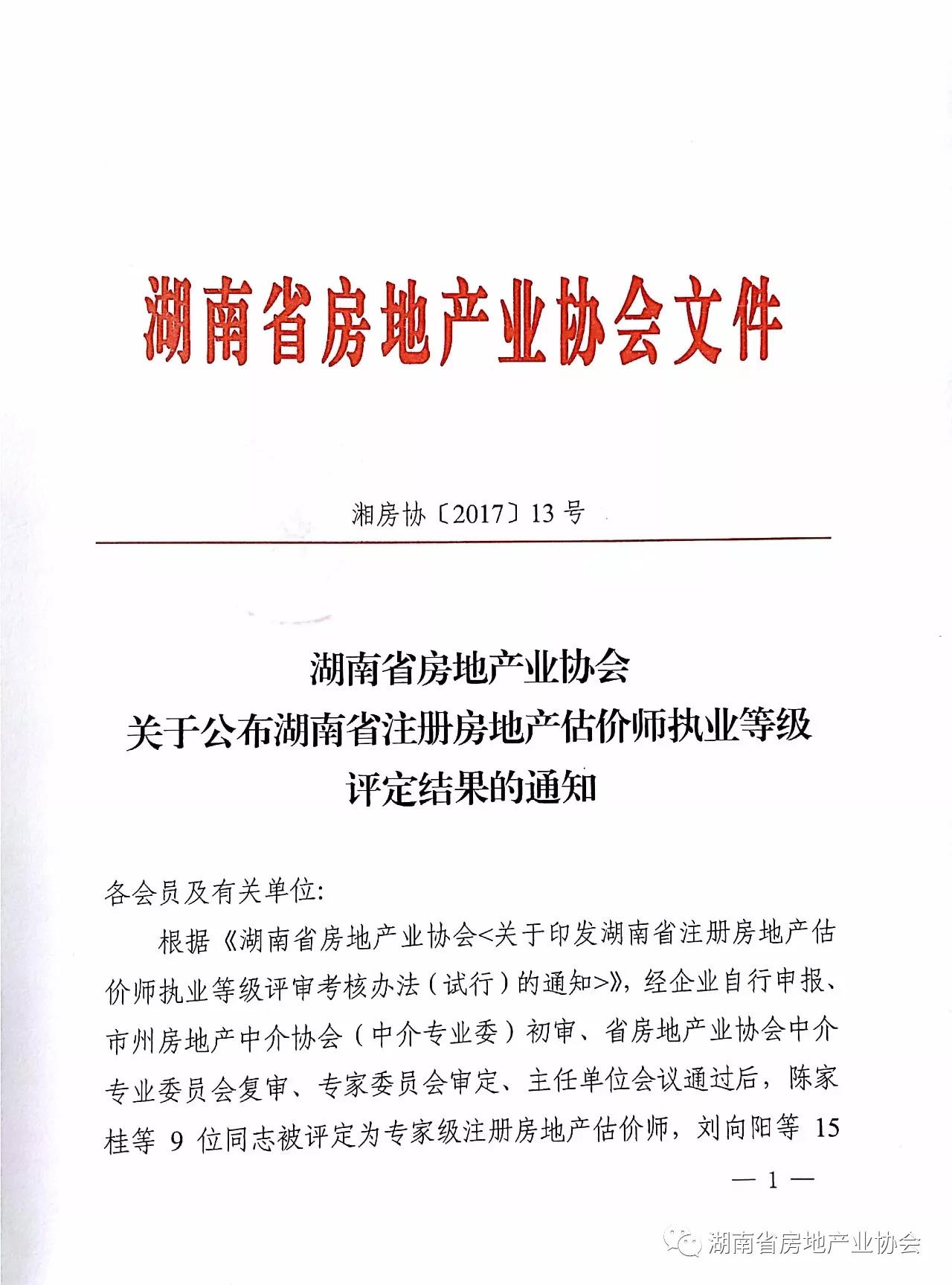湖南省房地產(chǎn)業(yè)協(xié)會(huì)關(guān)于公布湖南省注冊房地產(chǎn)估價(jià)師執(zhí)業(yè)等級評定結(jié)果的通知