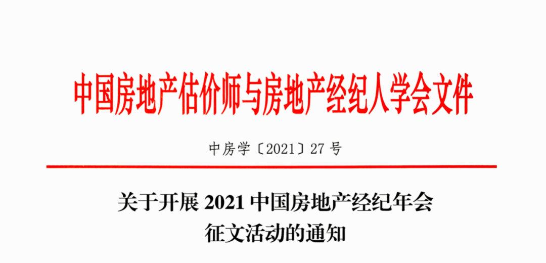 當前我國正加快構建以國內大循環為主體、國內國際雙循環相互促進的新發展格局,新一輪科技革命和產業變革深入發展。在此大背景下,房地產經紀行業新業態新模式不斷涌現,行業格局不斷演變與調整。為了深入探討行業未來發展方向,引導房地產經紀機構認清行業發展趨勢,把握未來發展機遇,共同構建行業新規則,促進行業規范健康發展,我會擬于2021年7月,舉辦主題為“房地產經紀的未來”的2021中國房地產經紀年會。現公開征集年會文章,有關事項通知如下: