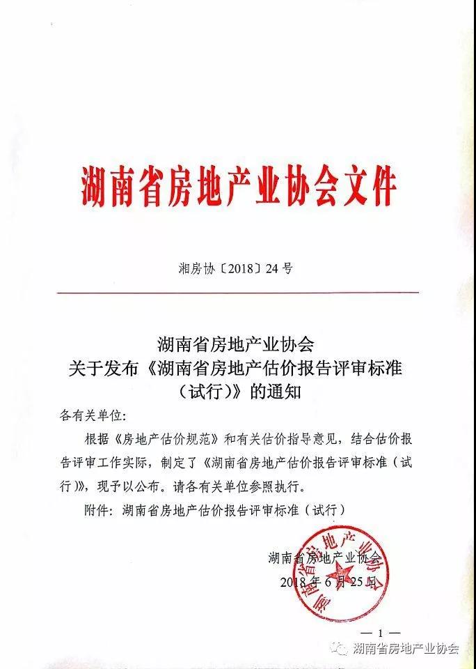 關于發布《湖南省房地產估價報告評審標準 (試行)》的通知