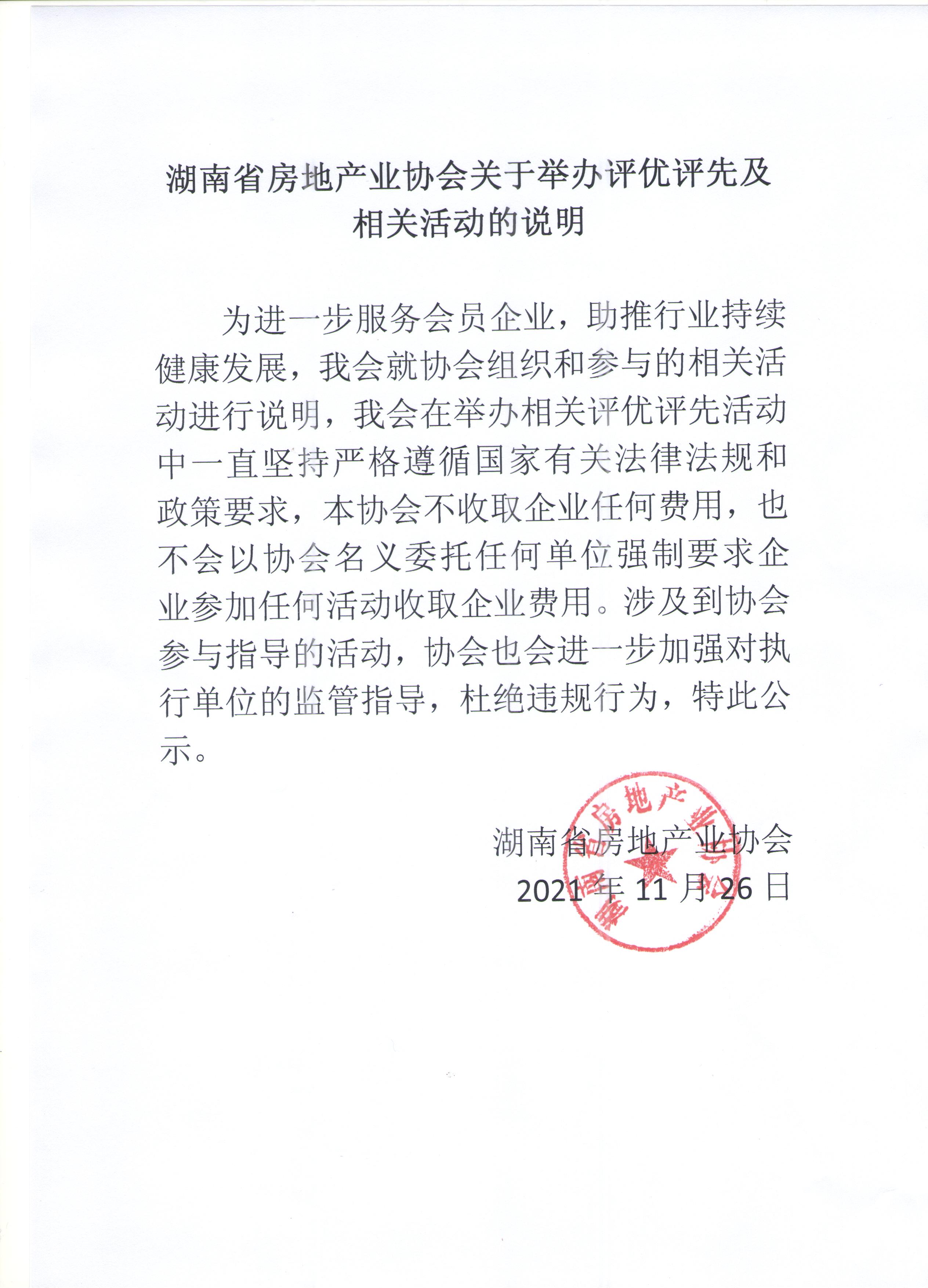 湖南省房地產(chǎn)業(yè)協(xié)會(huì)關(guān)于舉辦評(píng)優(yōu)評(píng)先及相關(guān)活動(dòng)的說明