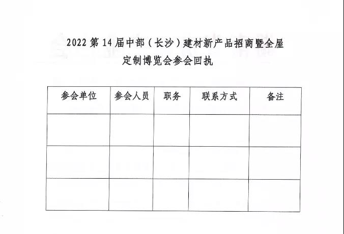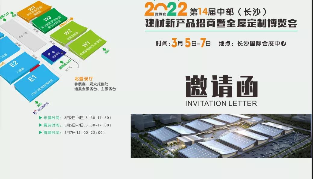 關于邀請觀展2022第14屆中部(長沙)建材新產品招商暨全屋定制博覽會的函