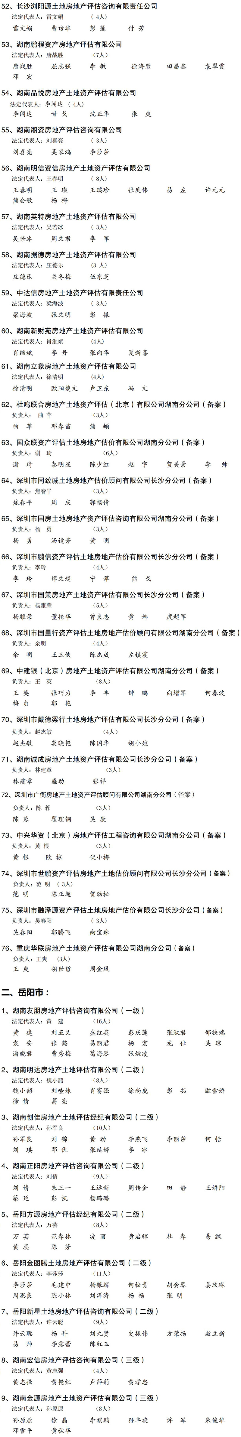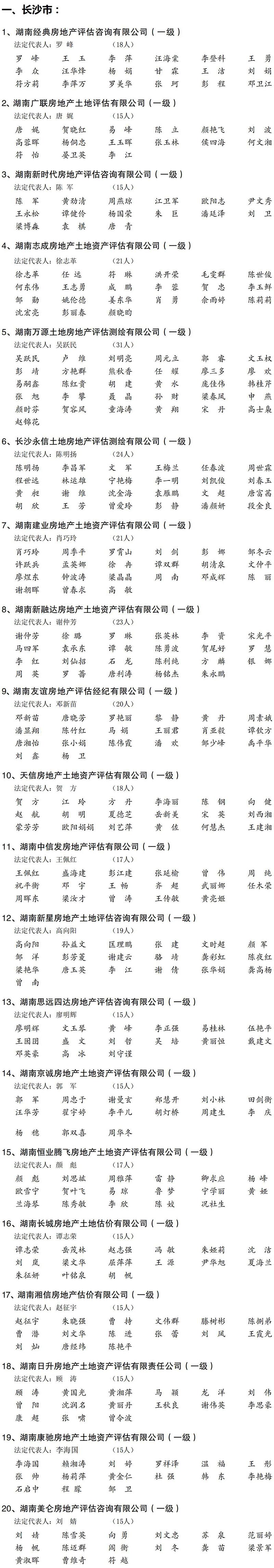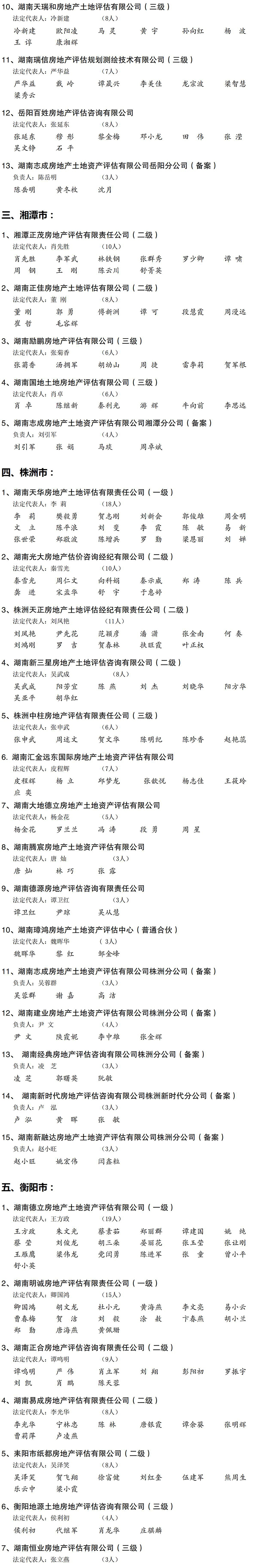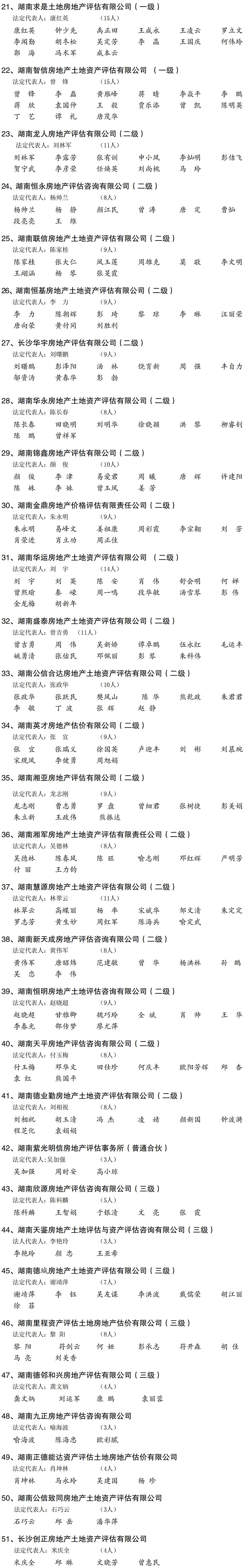 2021年度湖南省房地產估價企業及注冊房地產估價師名單公布