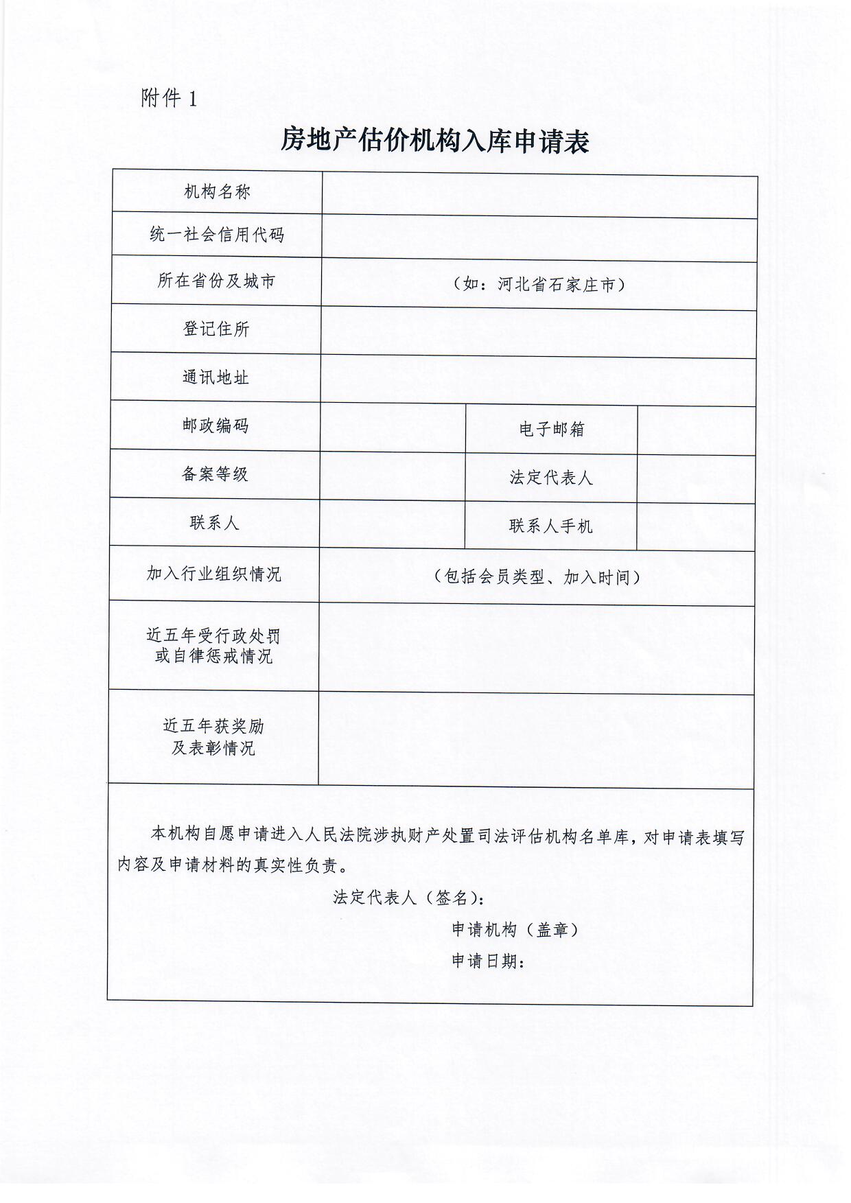 附件1 房地產估價機構入庫申請表(點擊下載)
