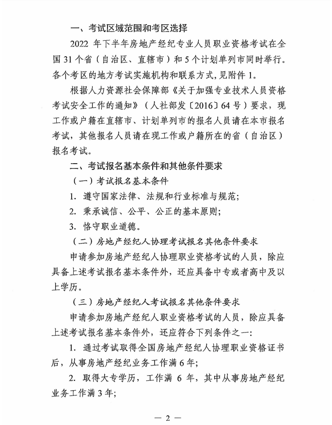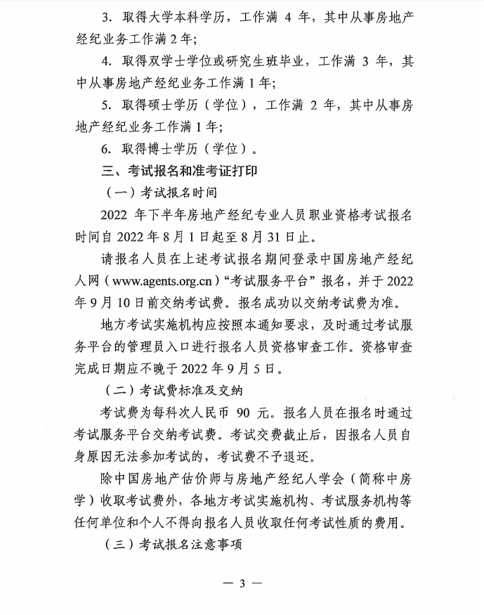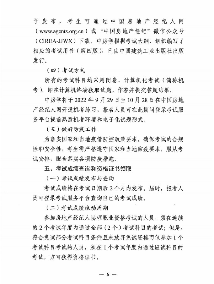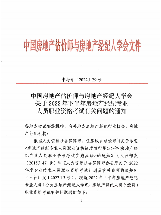 附件:中國房地產估價師與房地產經紀人學會關于2022年下半年房地產經紀專業人員職業資格考試有關問題的通知