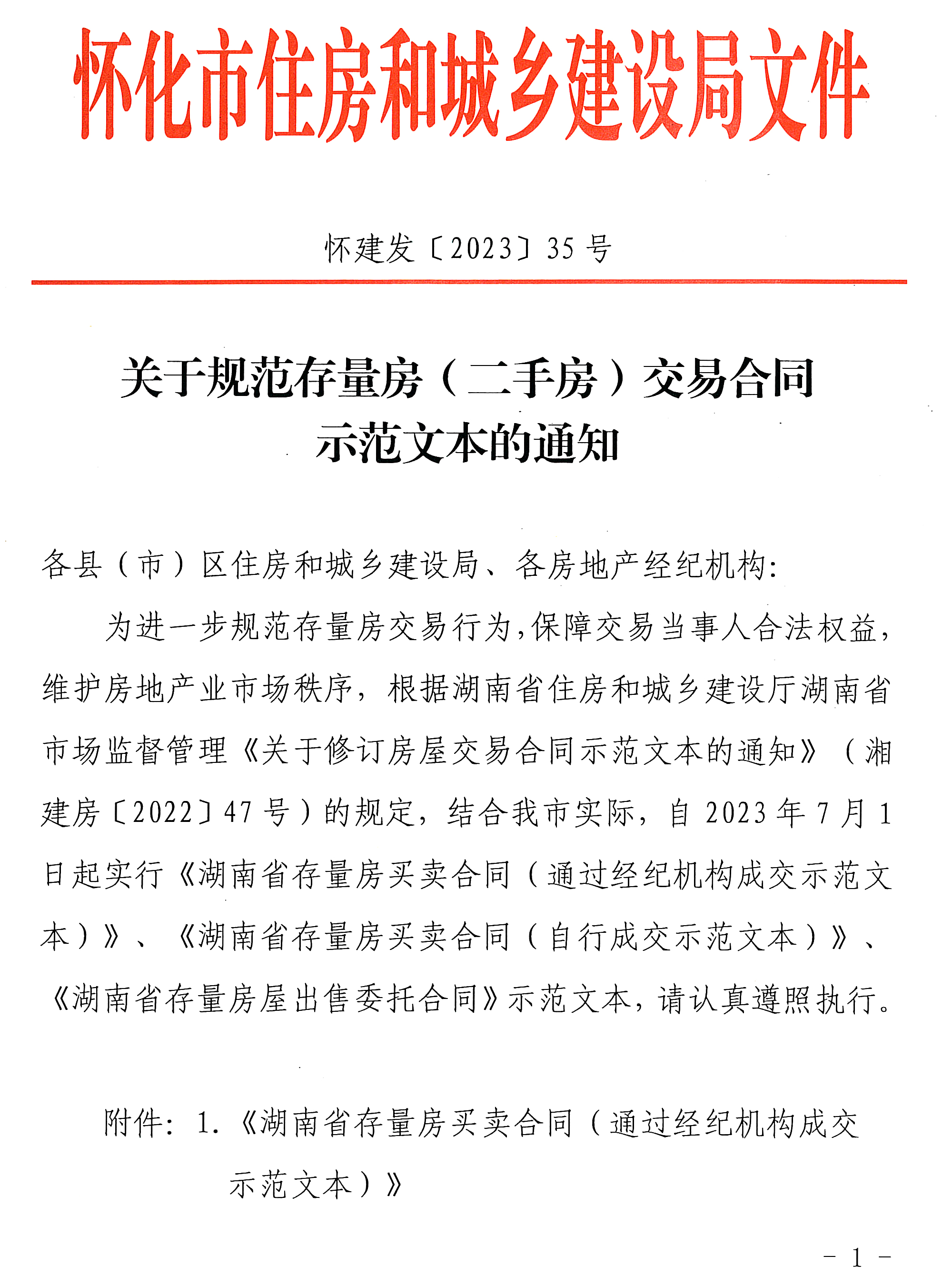 附件:1.《湖南省存量房買(mǎi)賣(mài)合同(通過(guò)經(jīng)紀(jì)機(jī)構(gòu)成交示范文本)》