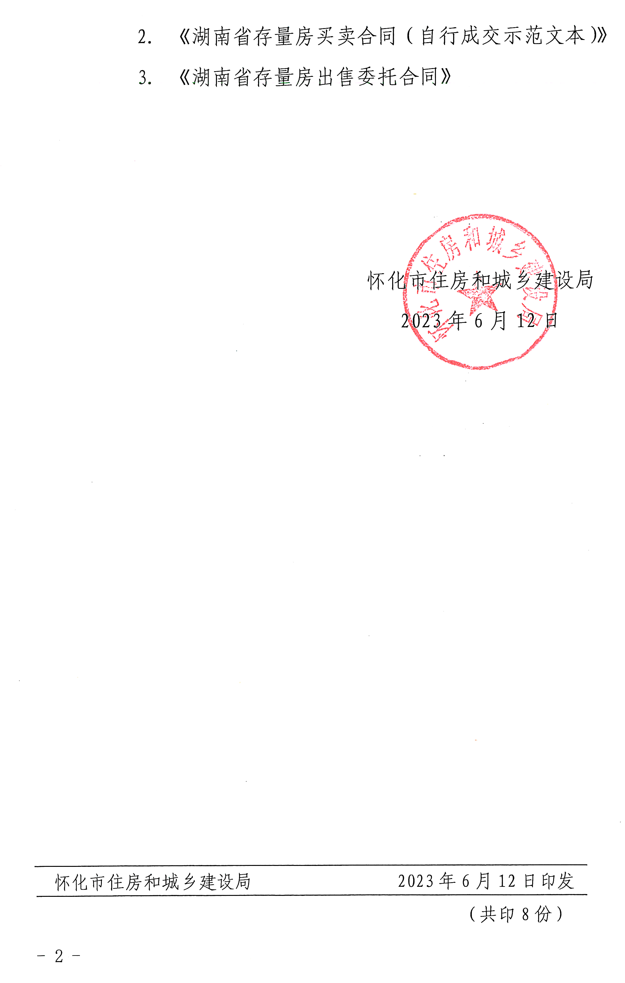 懷化市住房和城鄉(xiāng)建設(shè)局關(guān)于規(guī)范存量房(二手房)交易合同示范文本的通知