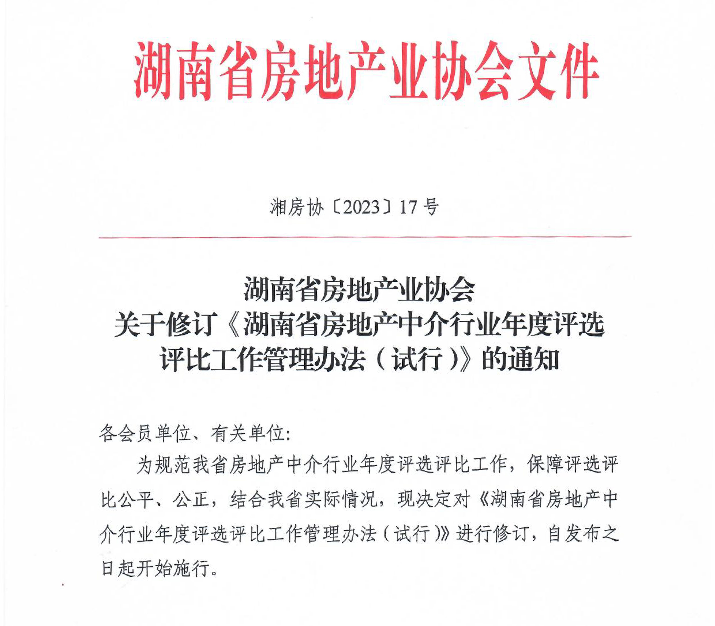 關于修訂《湖南省房地產中介行業年度評選評比工作管理辦法(試行)》的通知