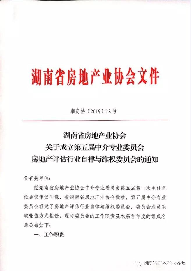 關于成立第五屆中介專業委員會房地產評估行業自律與維權委員會的通知