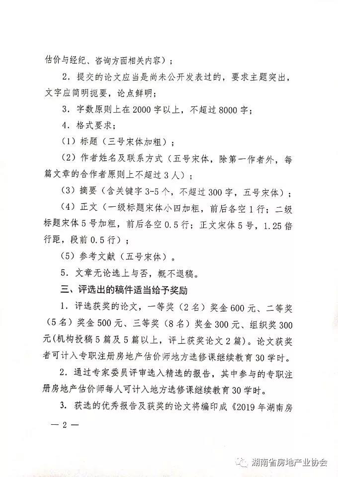 關于征集2019年湖南房地產評估、經紀、 策劃、咨詢報告及論文的通知
