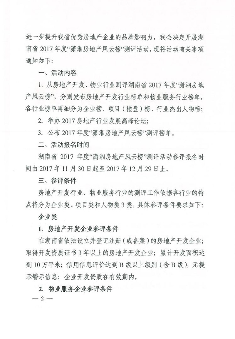 關于舉辦湖南省2017年度“瀟湘房地產風云榜”測評活動的通知