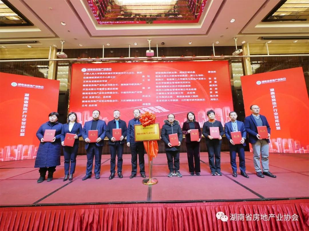 會議現場進行了湖南省房地產行業 “智庫聯盟” 揭牌儀式。湖南省房地產行業 “智庫聯盟”是由湖南省住房和城鄉建設廳指導,湖南省房地產業協會、湖南大學等單位發起,聯合我省部分房地產開發、物業企業,并邀請行業內知名專家加入共同組成的行業智庫,智庫聯盟主要為行業研討學習、課題研究、試點示范提供智力支持。通過智庫聯盟積極作用的充分發揮,湖南省房協將與大家一同服務好政府、服務好行業,促進房地產行業高質量發展。會議還邀請了13位在宏觀經濟、城市發展、房地產發展等方面權威專家擔任我們行業智囊。