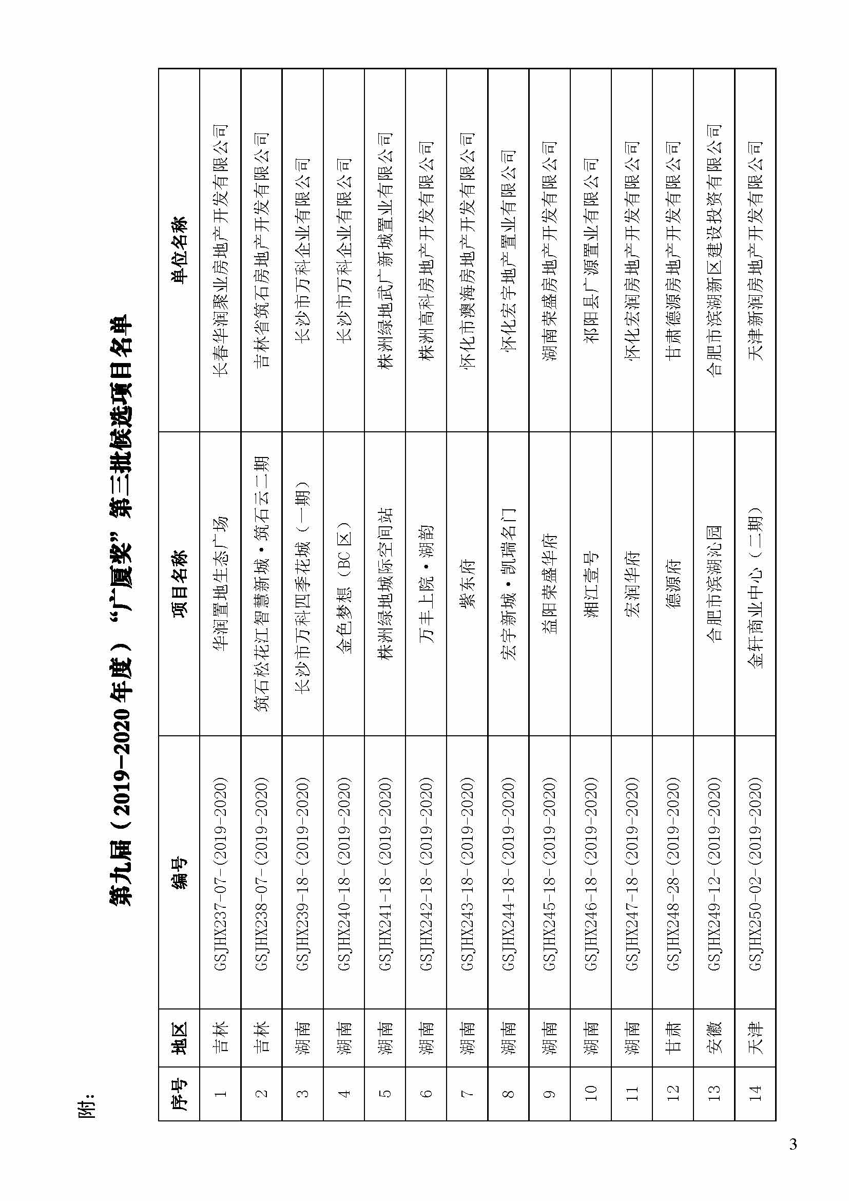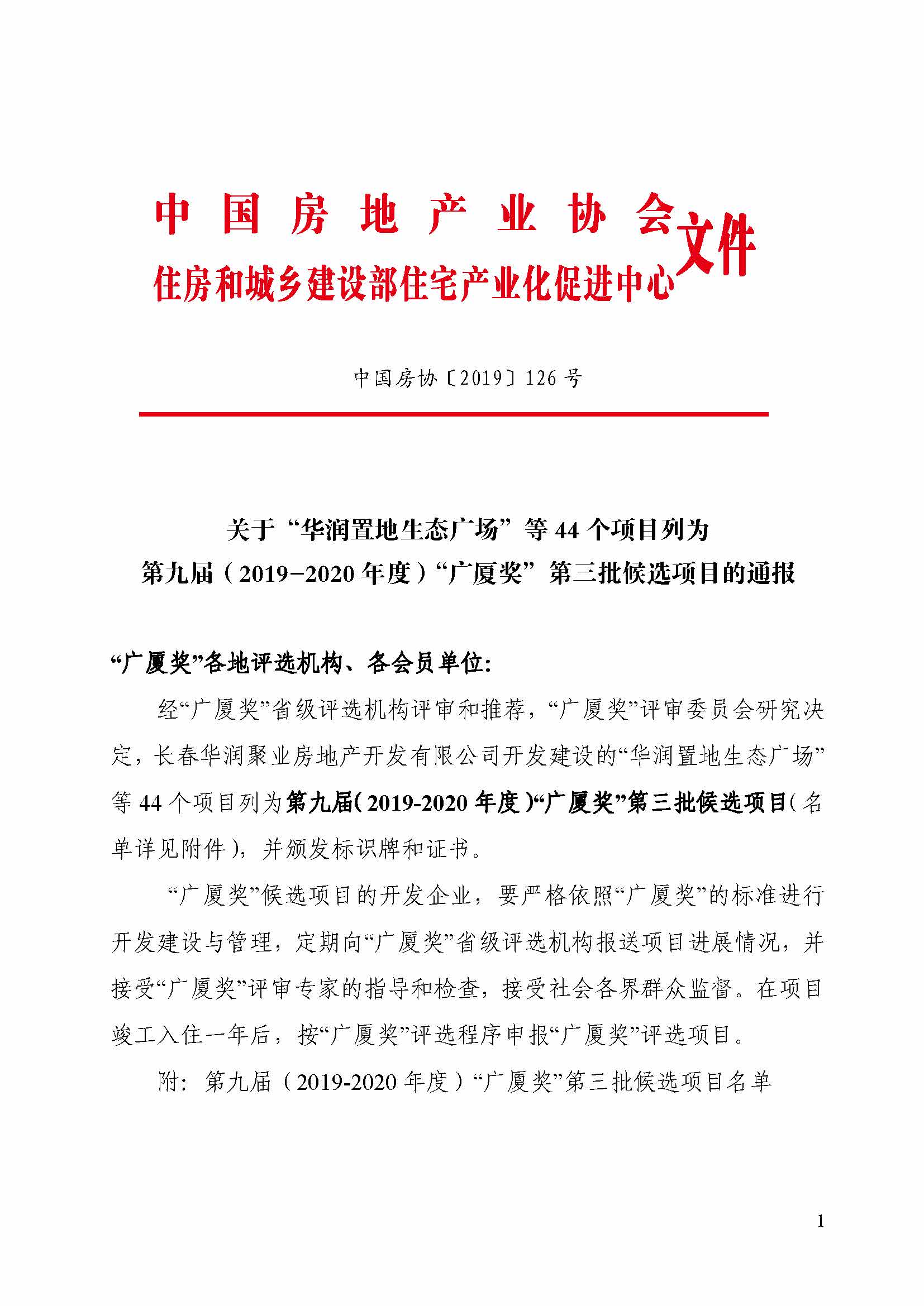 關于“華潤置地生態(tài)廣場”等 44 個項目列為第九屆(2019-2020 年度)“廣廈獎”第三批候選項目的通報