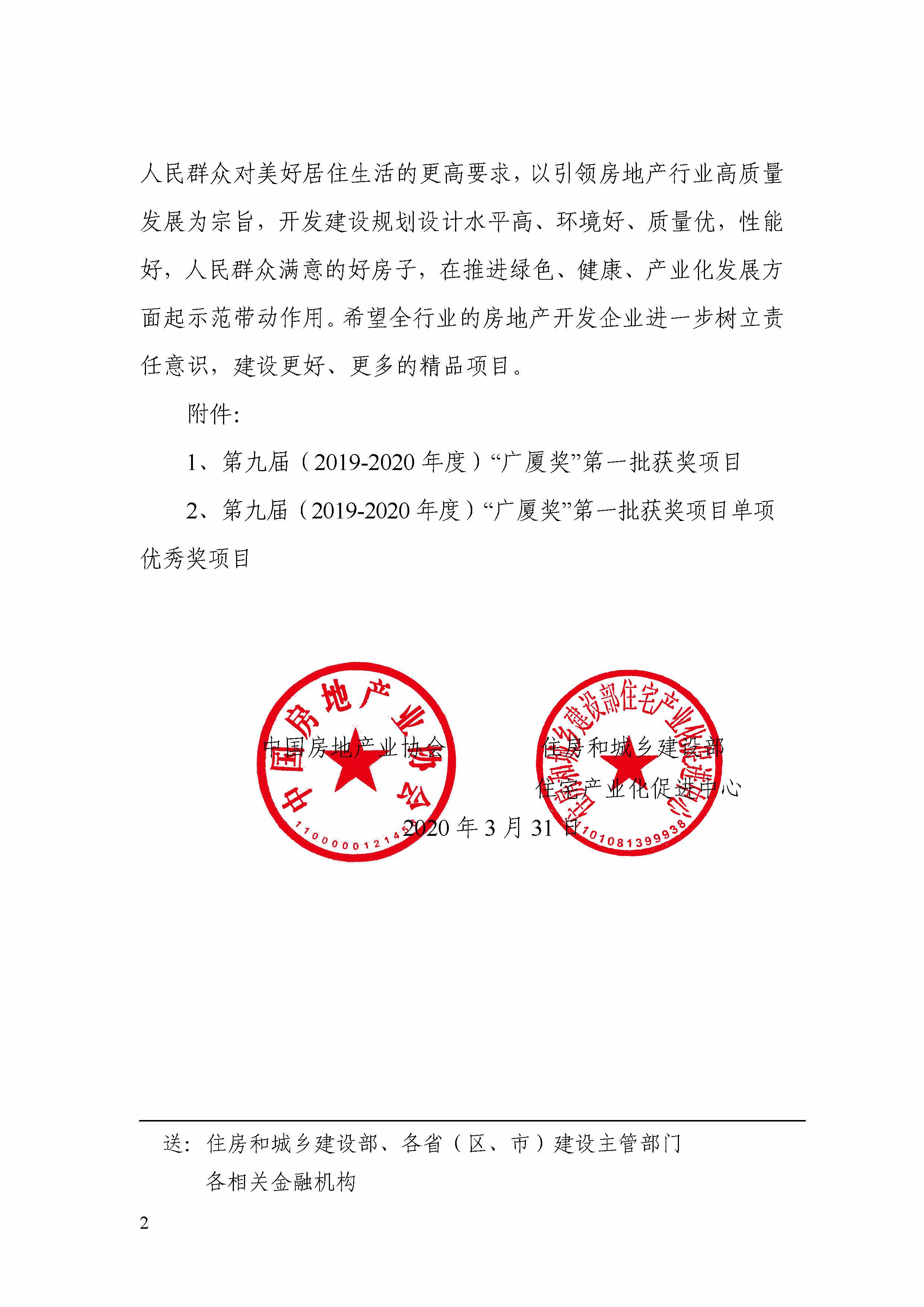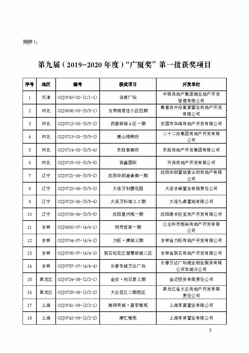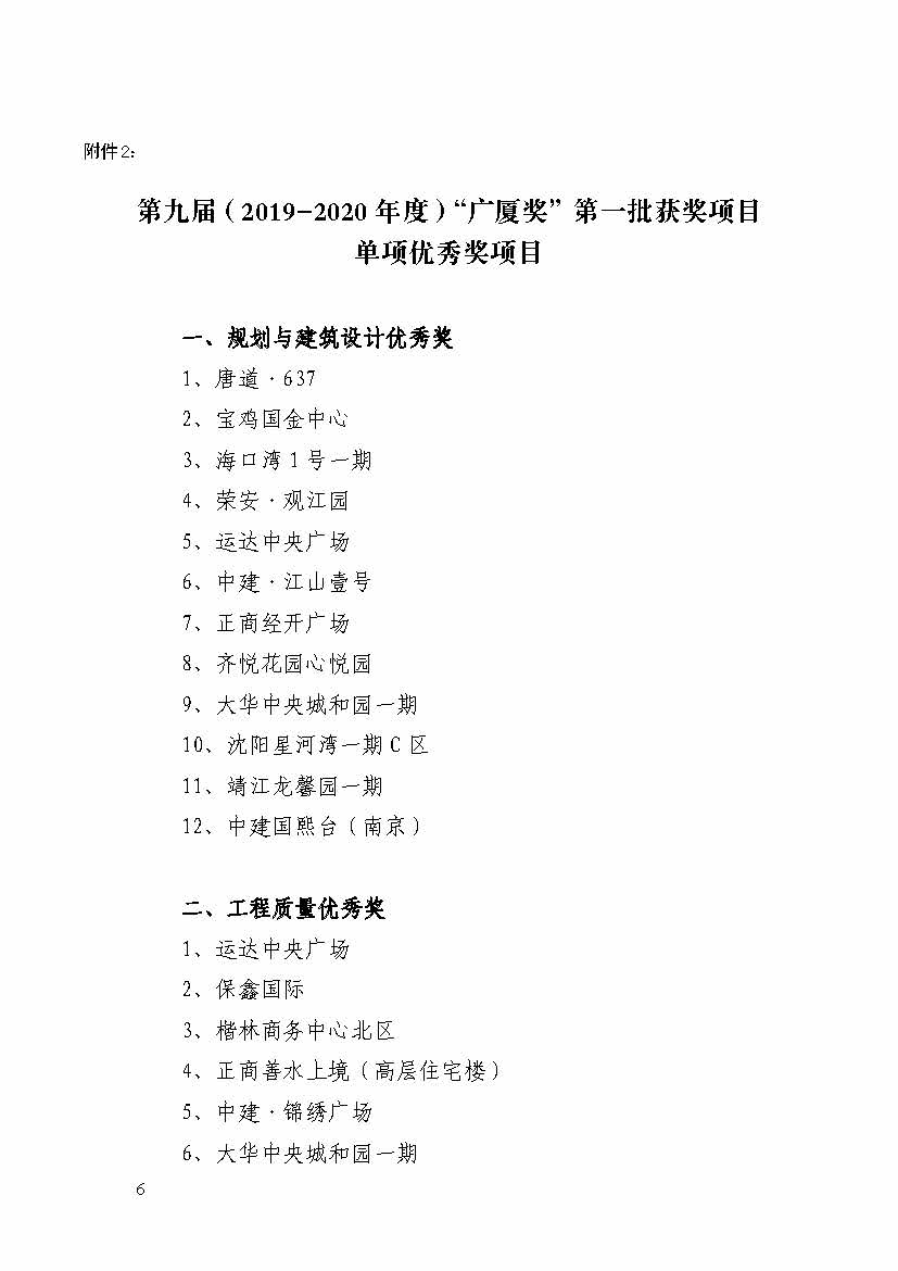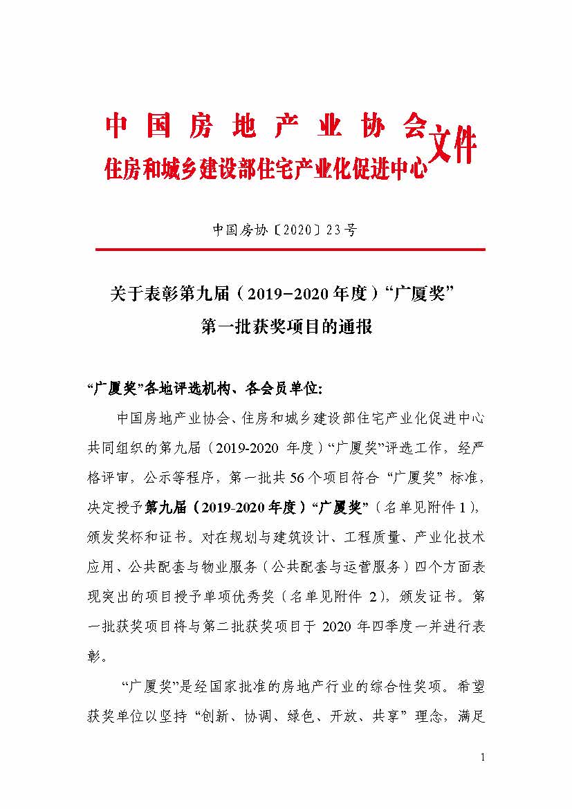 關于表彰第九屆(2019-2020 年度)“廣廈獎” 第一批獲獎項目的通報